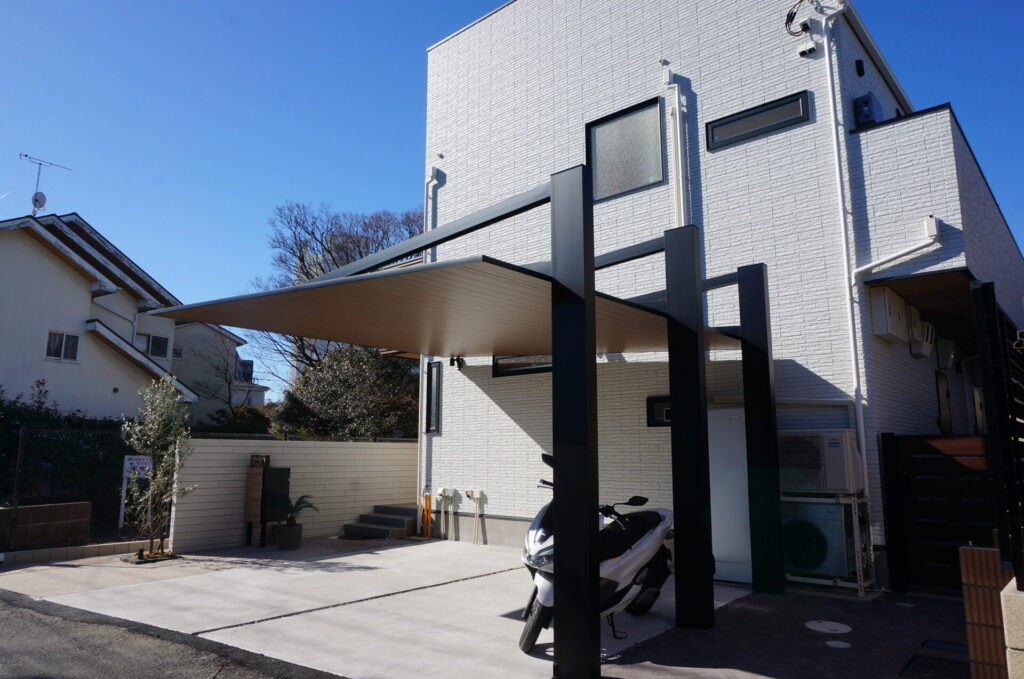 木目調のカーポートが主役 モダンなエクステリア施工例
